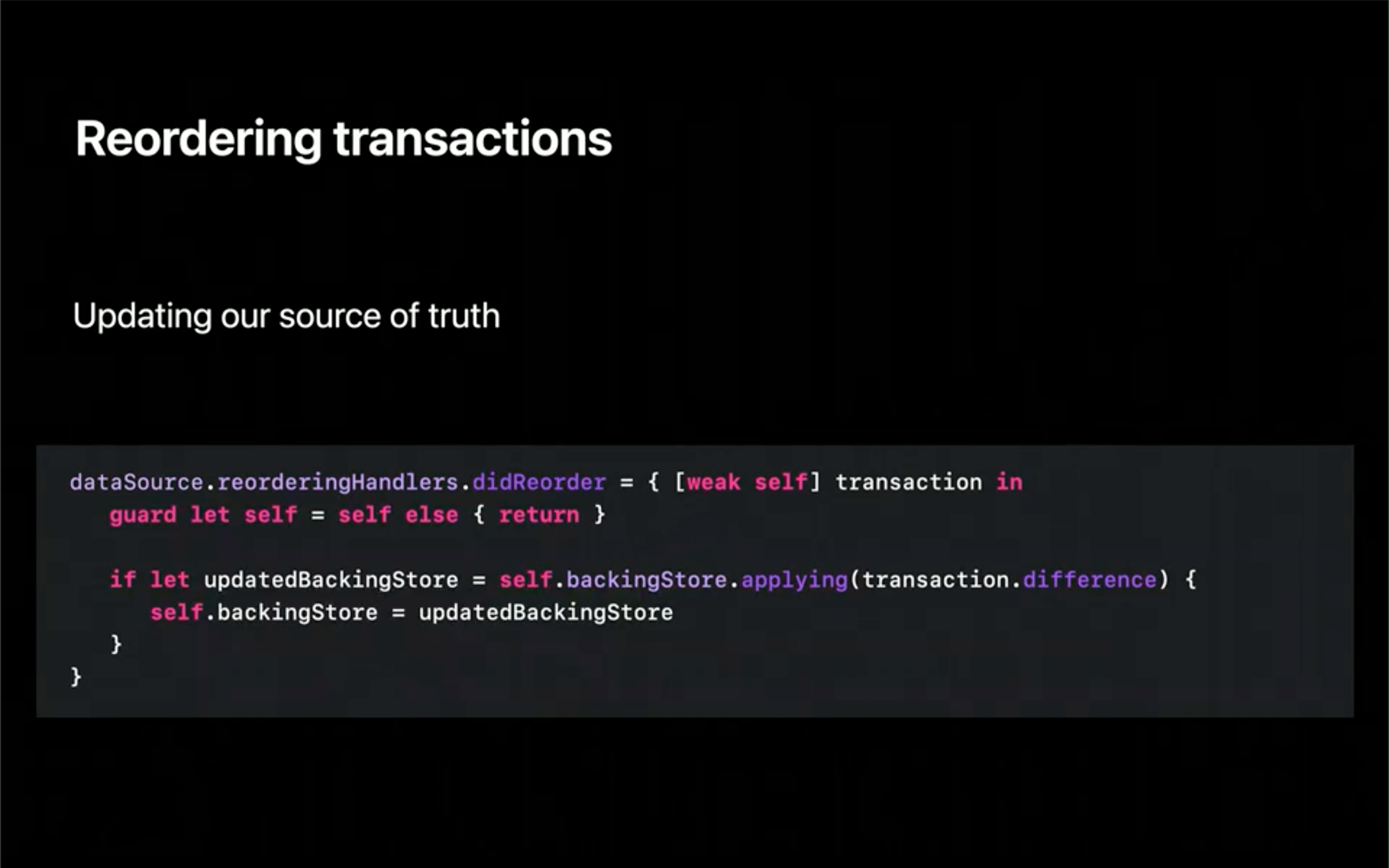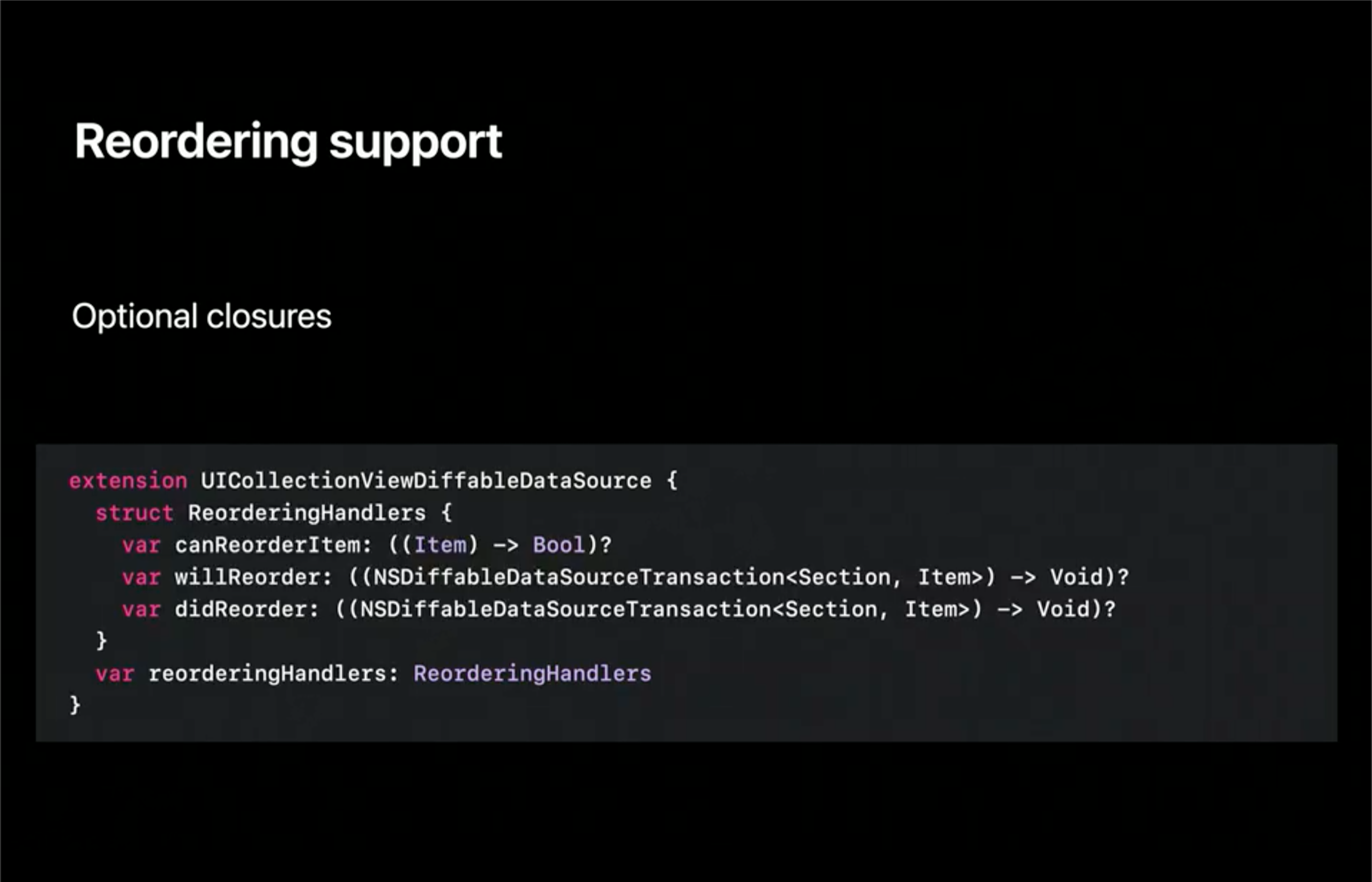 그래서 재정렬을 지원하기 위해 Diffable Data Source에는 이제 reorderingHandlers