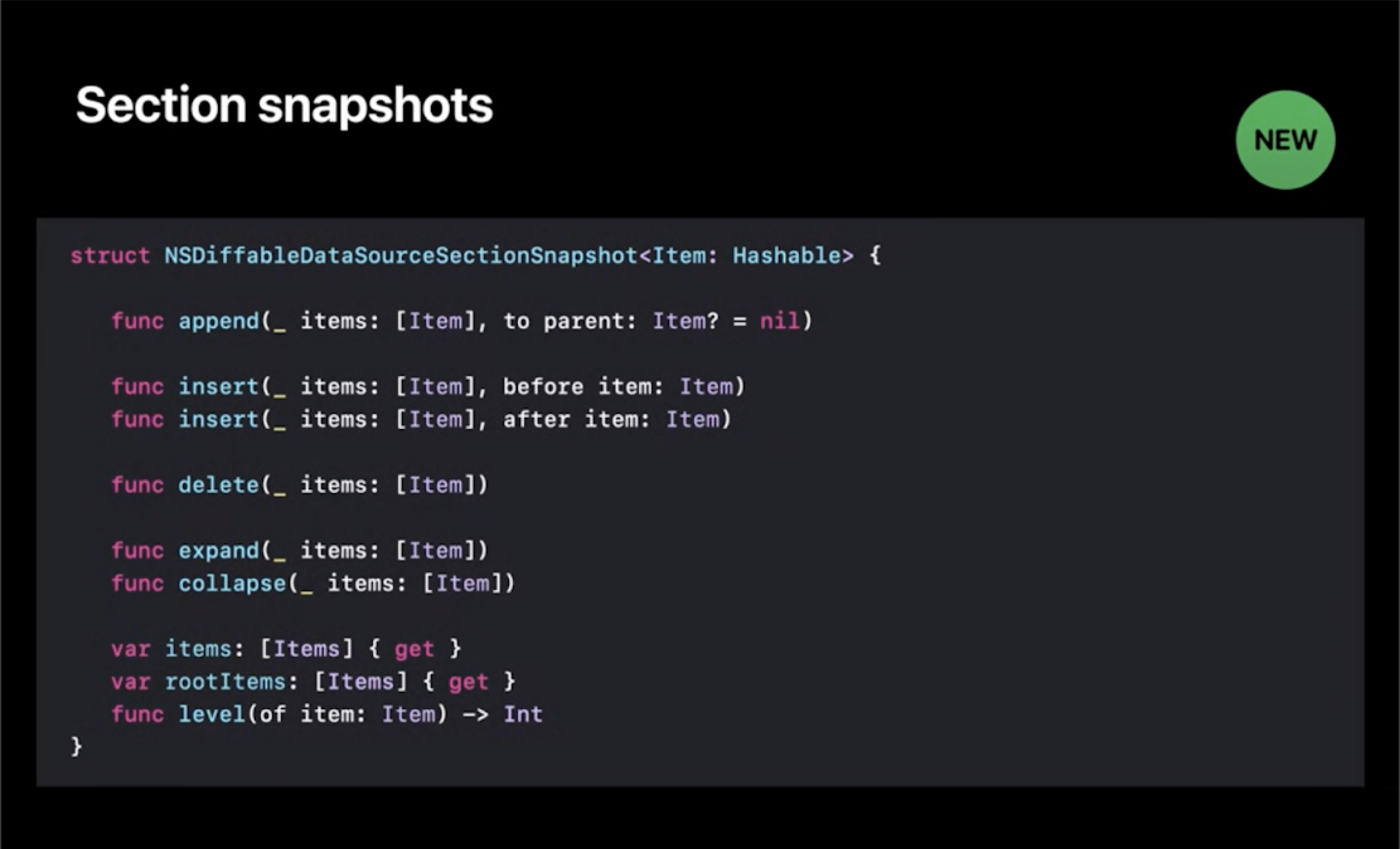 가 포함된)과 달리 새로운 iOS 14의 section snapshot의 유형을 살펴보면 제네릭 Item