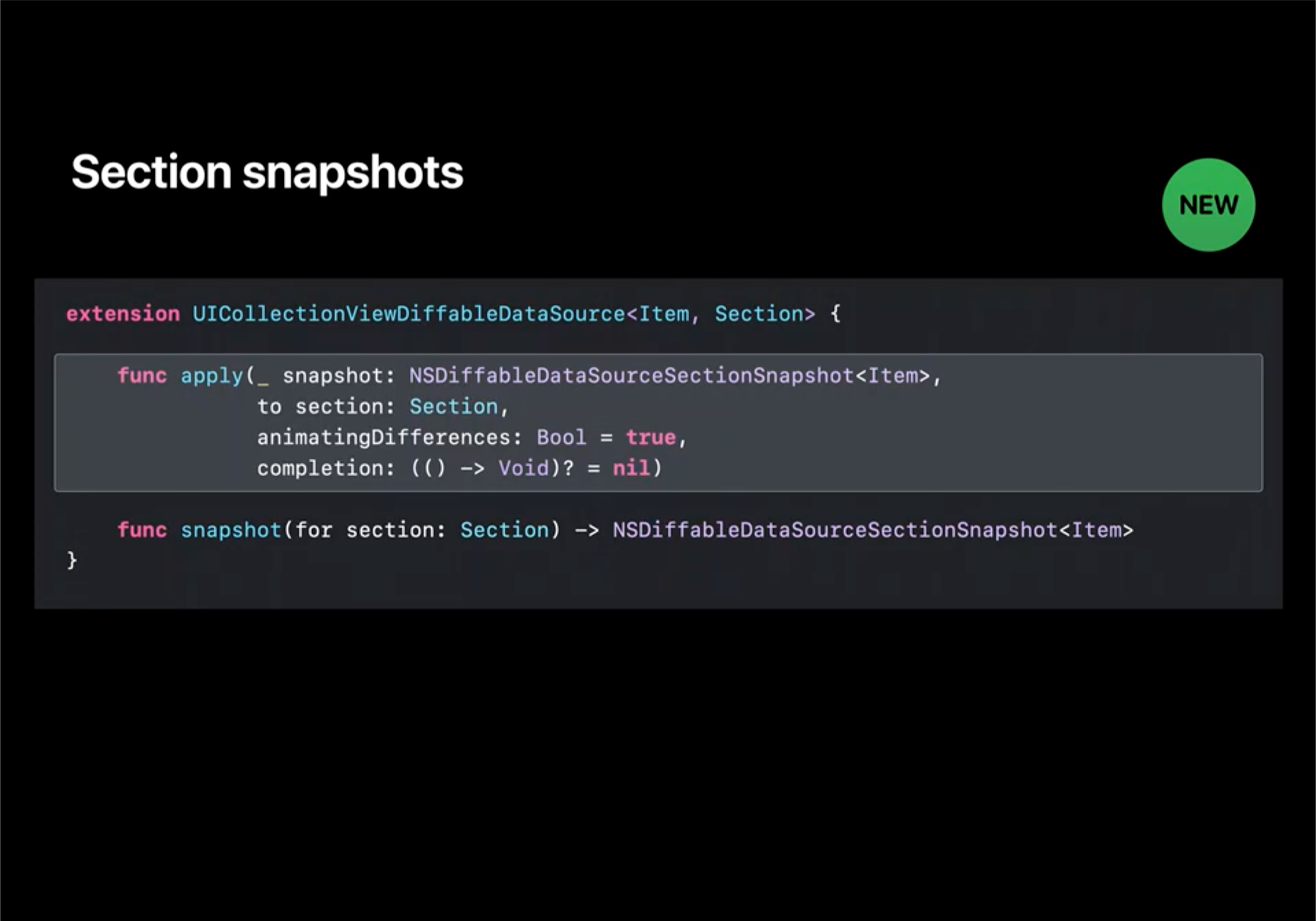 새로운 section snapshot 타입의 편의를 위해 UICollectionViewDiffableDataSource
