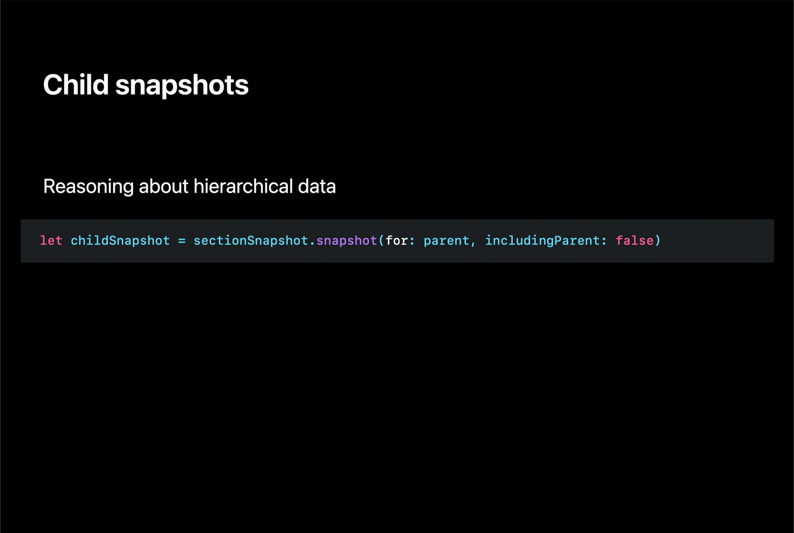 이 코드 스니펫에서는 선택적으로 결과 section snapshot에 부모를 포함하여 특정 부모 Item과 관련된 모든 자식을 가져올 수 있습니다.