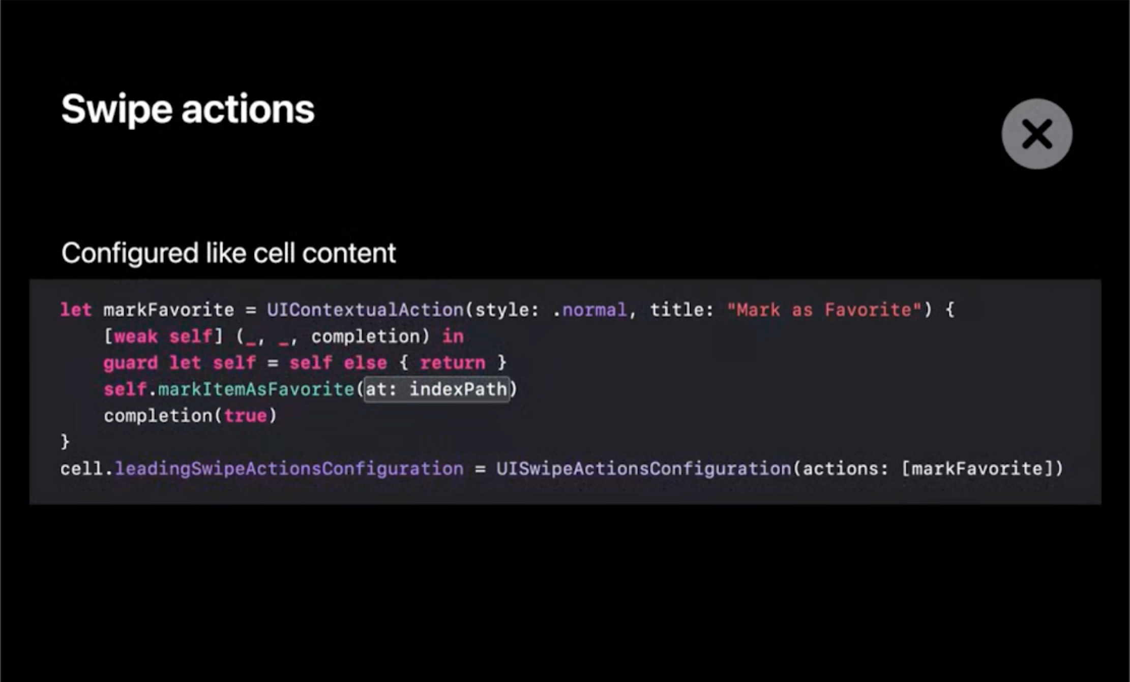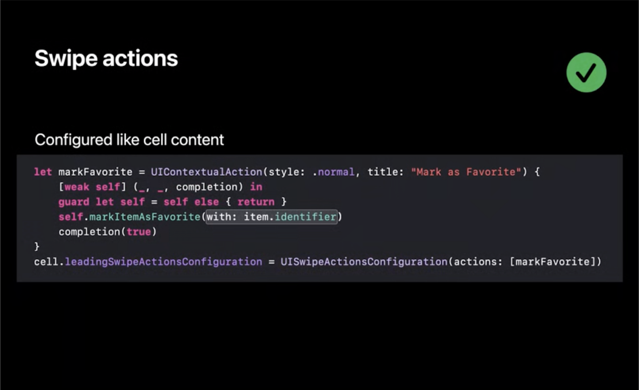 와는 대조적으로, Swipe Actions도 이제 list cell의 기능이 되었습니다.
